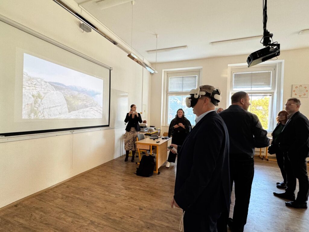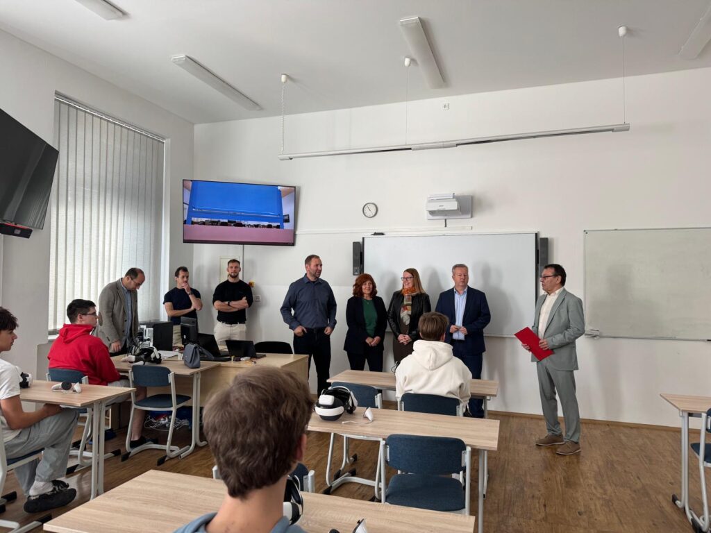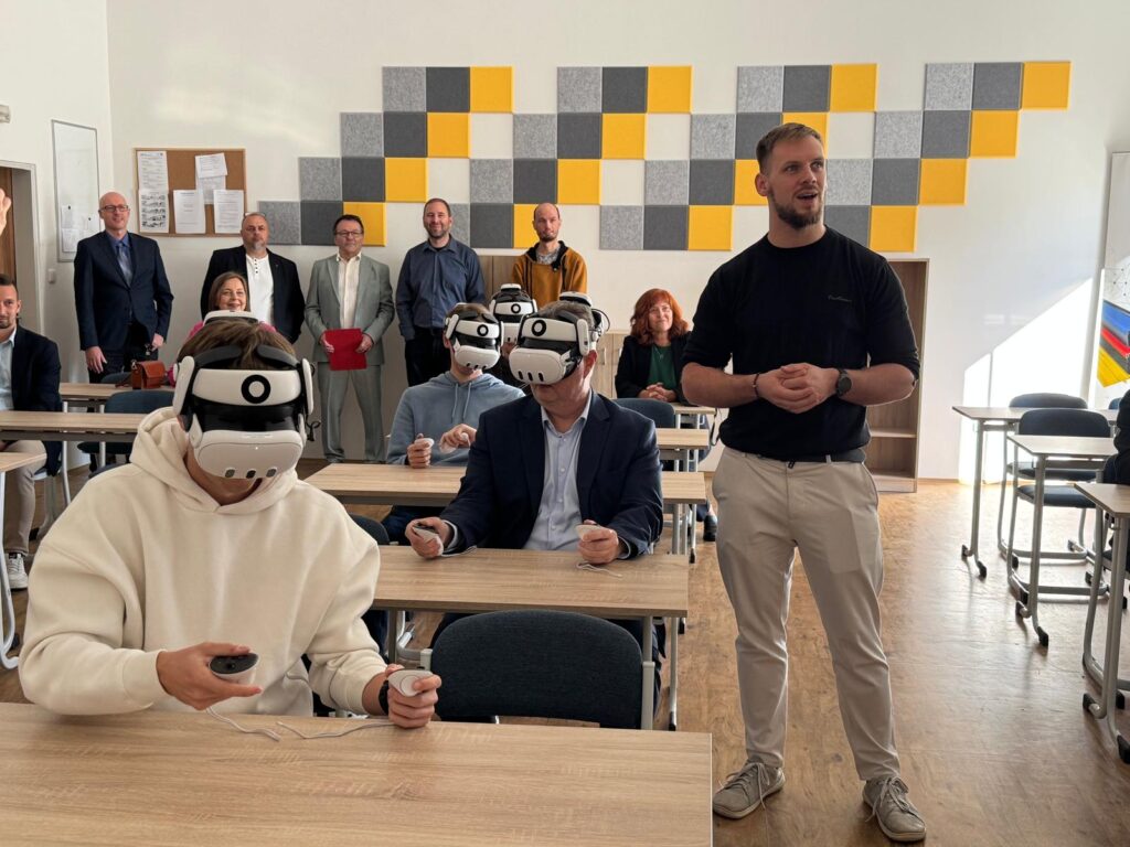 V pondělí navštívili naší školu představitele kraje v rámci projektu Návrat do budoucnosti. Škola v něm převzala 10 ks moderních VR brýlí, které umožní žákům rozšířit výuku odborných předmětů o nové technologie.